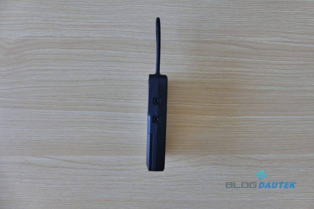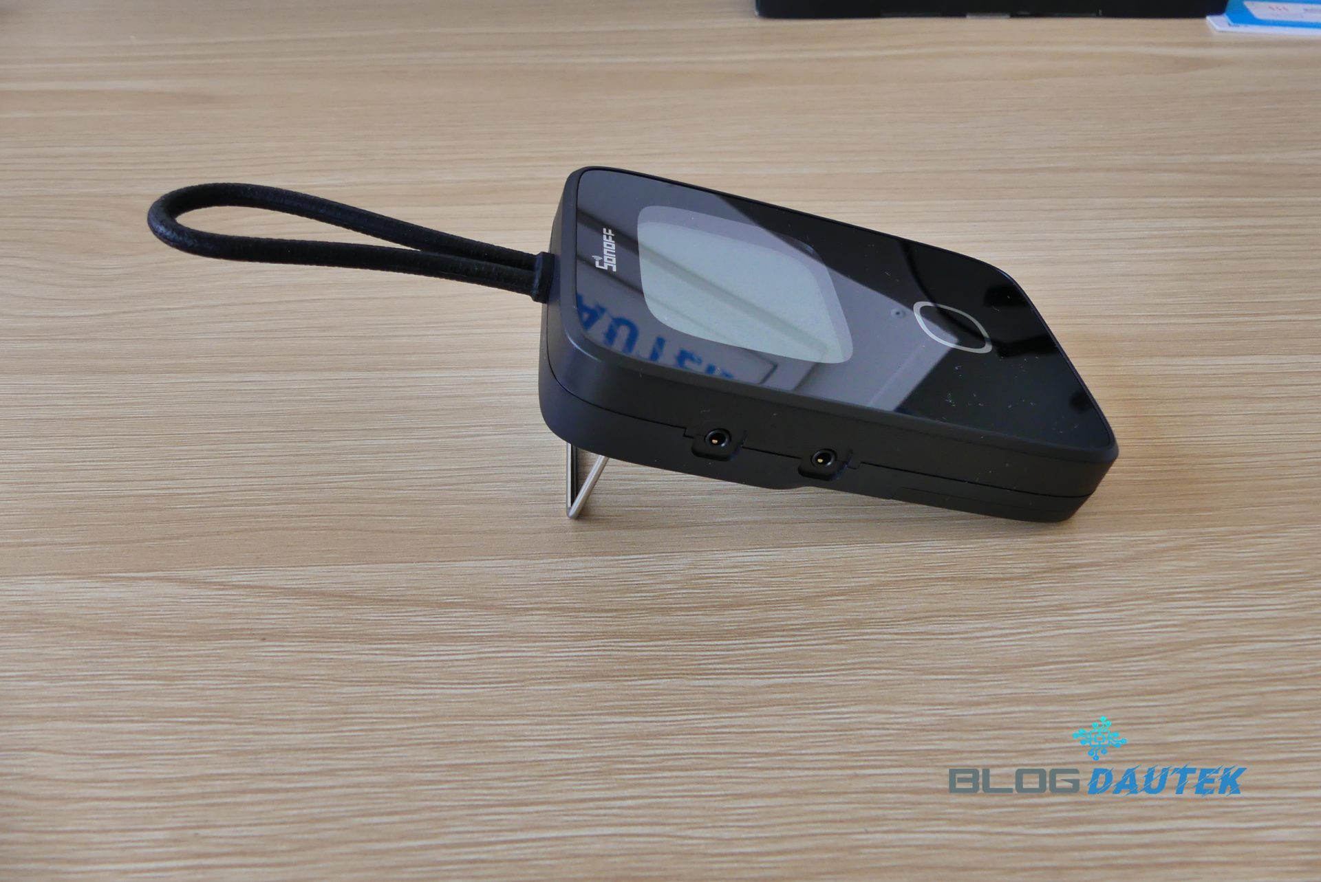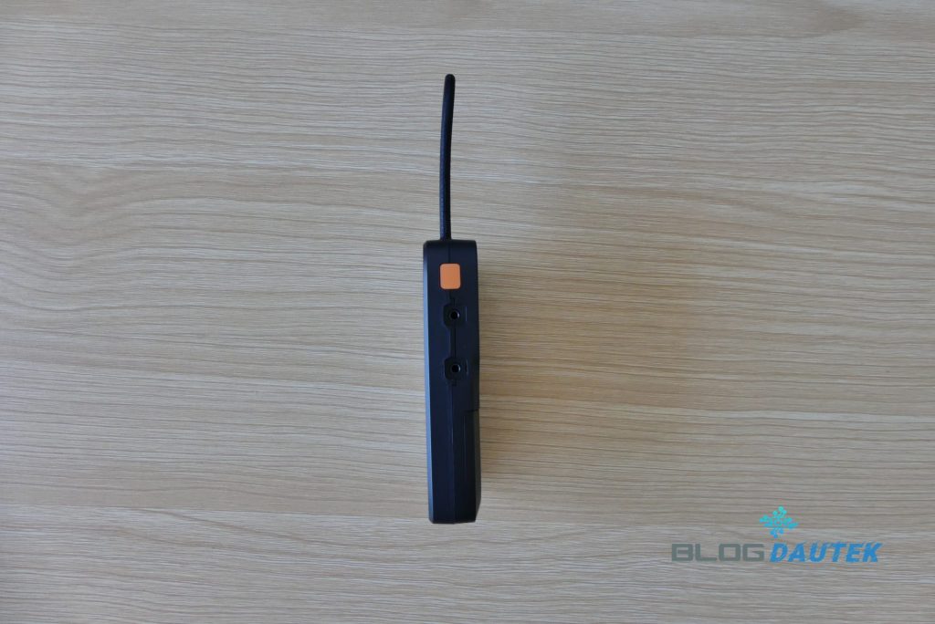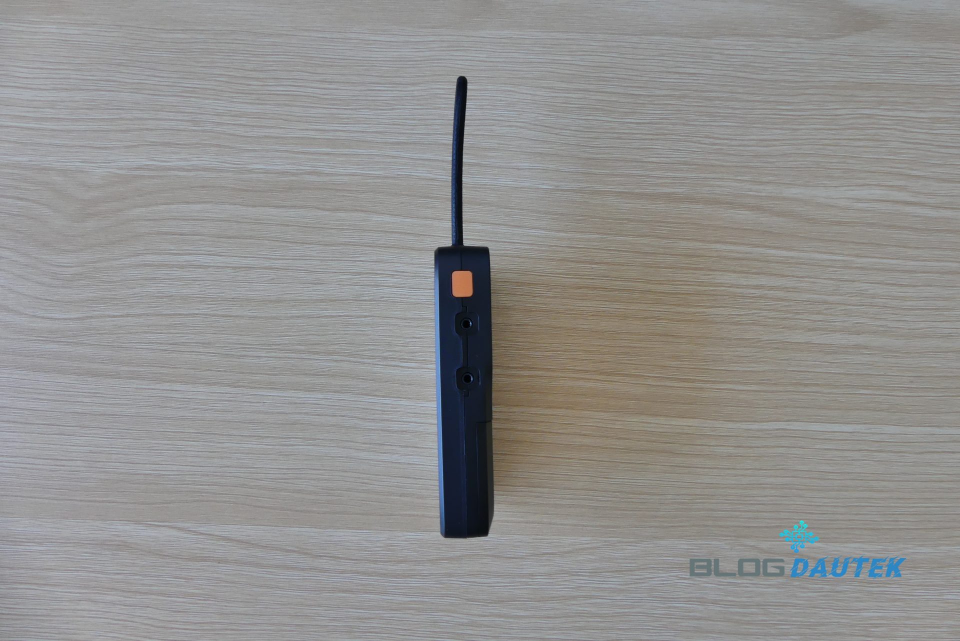 Maintenant, sur les côtés, avec le bouton orange pour allumer le boitier du thermomètre et les trous pour les sondes.