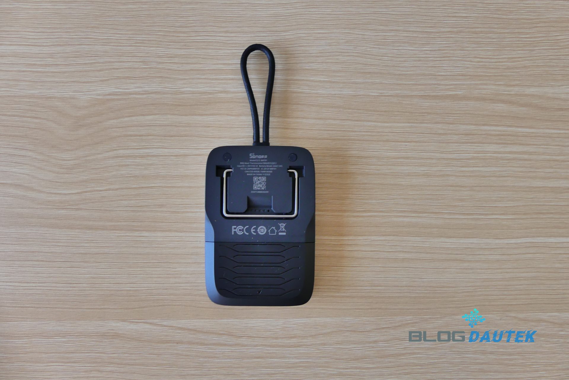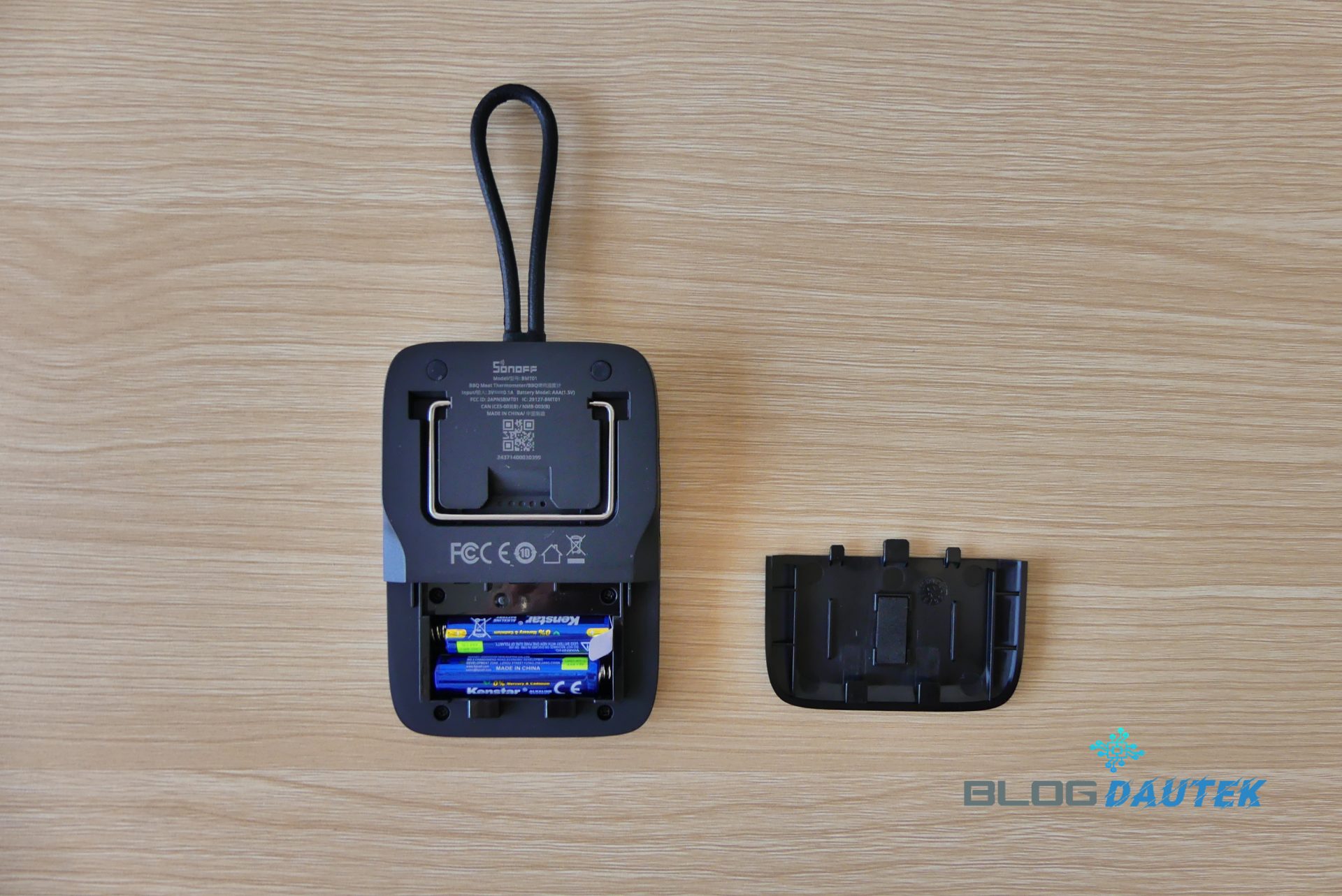De dos, avec l’anse grise pour poser le boitier et le compartiment des piles.