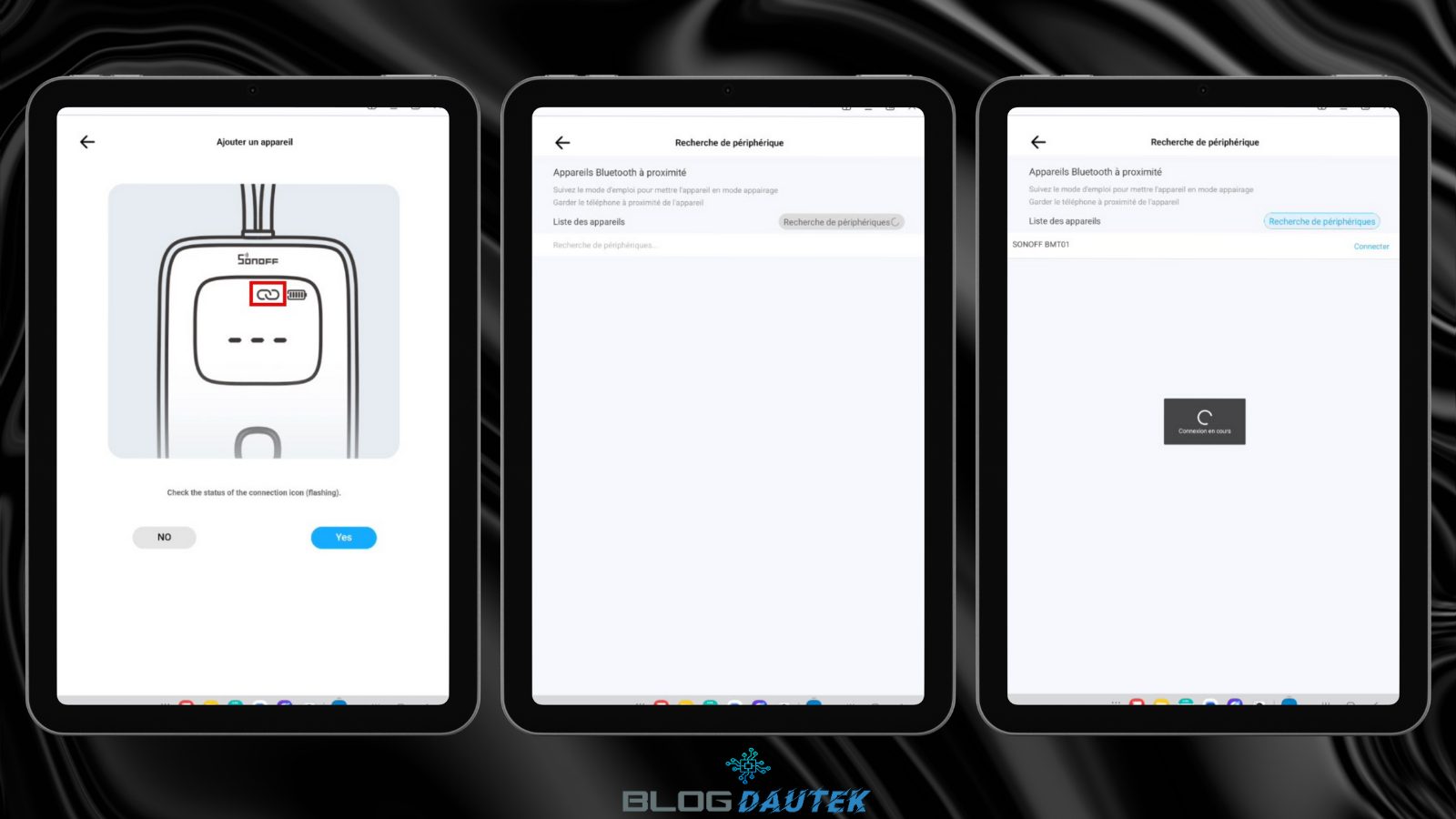 Le voyant dans l’encadré rouge doit clignoter, si c’est le cas cliquez sur Yes. La recherche est en cours et la connexion se fait.